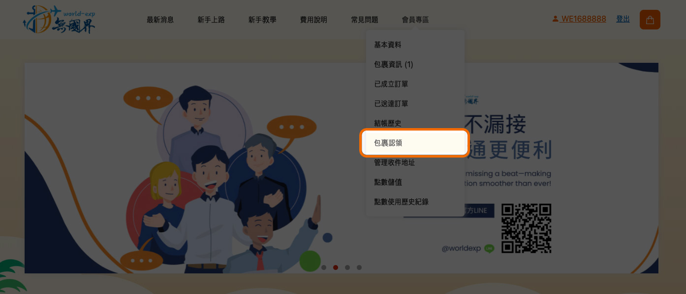 STEP 4. 進入 「會員專區」 > > 「包裹資訊」。