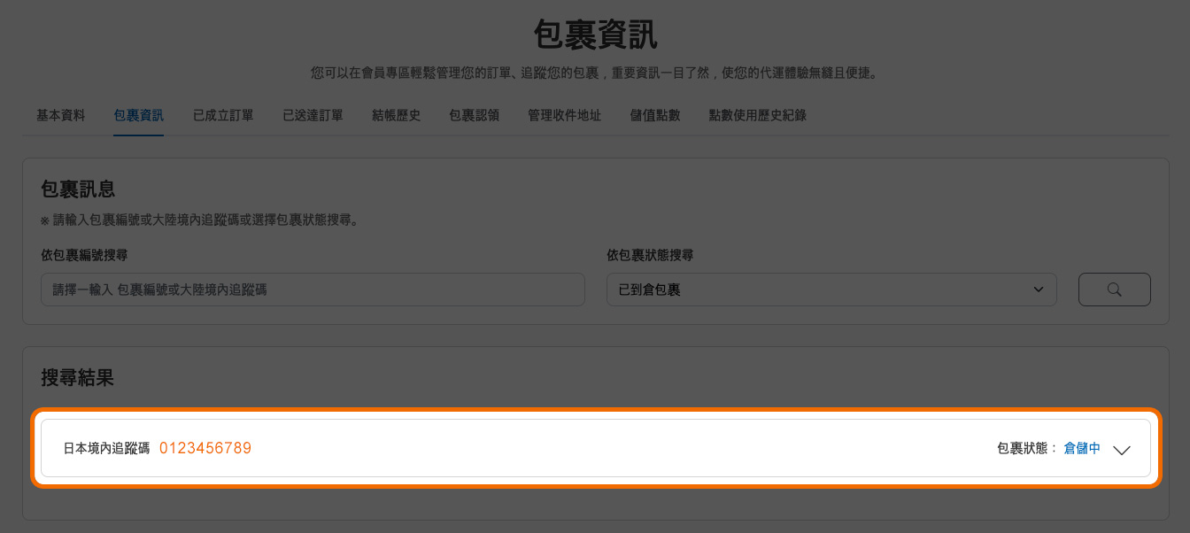 STEP 5. 認領後將顯示於您的包裹資訊內。